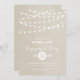 Chic modern summer wedding engagement party invitation design with simple elegant glowing string lights hanging across the top and a classy mix of modern and calligraphy script fonts on a printed faux watercolor texture background. A simple and stylish preppy design, perfect for summer! Click the CUSTOMIZE IT button to customize fonts, move text around and create your own unique one-of-a-kind invitation design.