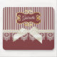 A vintage Victorian style mousepad featuring deep red and creamy white colored vertical stripes embellished with an image of a cream colored ribbon tied into a sweet bow affixed to a string of elegant pearls. Personalize this elegant design by adding your name to the ornate gold edged frame. NOTE: This is a flat printed image. The bow, lace, pearls, and gold frame are NOT real.