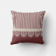 Pearls and Lace Deep Red Stripes Bow and Name Throw Pillow