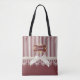 A vintage Victorian style tote bag featuring deep red and creamy white colored vertical stripes embellished with an image of a cream colored ribbon tied into a sweet bow affixed to a string of elegant pearls. Personalize this elegant design by adding your name to the ornate gold edged frame. NOTE: This is a flat printed image. The bow, lace, pearls, and gold frame are NOT real.