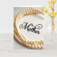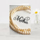 This card centers on the word “Mother” written in elegant black lettering, placed prominently in the middle of a bright white background. Curving around the text is a loose ring of creamy pearl strands, arranged like a gentle embrace that suggests closeness and care ❤️. The pearls show soft, milky highlights with faint rainbow sheen, catching the light in tiny glints that feel tender rather than flashy. The background stays simple and uncluttered, letting the dark text and pale pearls stand out with quiet contrast. A shallow focus keeps the central letters crisp while the pearls farther away soften into a dreamy blur, like a warm hug seen through relaxed eyes. The overall lighting is gentle and even, with minimal shadowing, giving the scene a calm, intimate tone 🌼. The black word sits cleanly against the white space, while the pearl loop frames it in an oval shape, with a few strands overlapping near the lower edge.