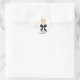 The sticker is made on wonderful paper and had no problem sticking to the bag that I purchased to put it on. I wanted to find a design that would be cute for the bride and groom and this one fit the bill as it has cute "bees" buzzing around and the wedding was taking place in a town called "Bee Cave". The packaging was great and protected the stickers. The website is easy to navigate and there are so many color choices. I had no problem finding a color that the bride was using on everything else selected. The design was adorable and there were many to choose from. You can make the figure as larger or smaller and you can place the photo and writting whereever you want to in the sticker. The printing is fabulous..better than expected.