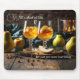 Mousepad featuring an artistic still life scene with wine and pears and your own funny or other quotes.