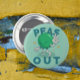 Spread good vibes everywhere you go with this Peas Out button. Featuring a happy green pea flashing a peace sign, this playful design delivers positive energy with a dash of pun-filled humor.