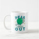 Sip with good vibes using this Peas Out classic mug. Featuring a cheerful green pea flashing a peace sign, this playful pun design adds positivity and smiles to every coffee, tea, or cocoa break.
