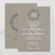 Pebble and Gray Frame Monogram Wedding Linen Paper Invitation