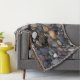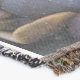 A quality printed throw has its advantages. This is a much finer weave throw than its loopier cousins, and though lighter, it is worth the investment for custom room accessorizing. The back is much prettier than the typical brown, and the fringe on the long sides very vivid, the selvage nicely done. Before photographing, I washed the throw in cold water, delicate, with a thicker woven throw the same size. On tumble dry low, this throw was dry in half the time as the other. This is a very practical quality if you use throws for furniture covers or to wrap up in frequently. The sleekness of the fabric makes it a great layer for accenting or protecting without the feeling of sitting on too much stuff. Perfect for napping or when you feel a light chill coming on. The color printing is beautiful and on this fabric, matched the design and color of my Photoshop image. This is an advantage for blending room fabrics and colors. The fringe on the short sides prints the colors from the design image and therefore varies from the side fringe. I streaked a white fractal line through the plaid pattern to give the illusion of weaving. This printed as crisp as an illusory thread, and put some white in the short side fringe, showing another advantage of print vs loomed- for artistic purposes, line lines, detail, and color integrity can be planned and preserved. My loomed throws have color limitations and more of a needlepoint texture. Print throws reproduce an exact image. The throw felt a little stiff straight out of the package, but this went away in the first delicate wash. Of course I searched the wash water for ink or bleeding and there was none.