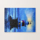 This fun puzzle features a night time view of the beautiful Peck Ledge Lighthouse in Connecticut. This artwork is actually based on vintage images of the lighthouse as it looked a generation ago rather than the way it looks today so the artwork on this lighthouse jigsaw puzzle honors it as it was built way back then. There's a warm glow both from the windows as well as the light itself. This artwork is a mix of mainly blues with the golden warmth of the lighthouse giving it interest.