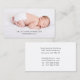 An adorable baby photo pediatrician business cards in a modern style. Add your own newborn photo on a plain background so that type overlay can be viewed. Modern professional style.
