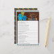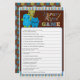 Baby shower games sheet card. Peek-a-Boo Monsters Baby Shower theme featuring blue, green brown colors and sprockets & stripes patterns. Matches MonkeyHutDesigns' baby shower invitation design #063.
