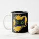 Peeking Black Cat: Big Green Eyes Feline Design Two-Tone Coffee Mug