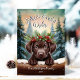 Peeking Chocolate Lab Jolly & Bright Rustic Forest Holiday Card