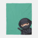 Adorable chubby yet fearsome looking little ninja is dressed in black outfit and carrying katana - traditional Japanese sword.