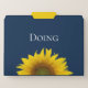 Floral file folders with To Do, Doing and Done phrases. With peeking sunflower images set on a navy blue background, this set can be customized with your own white lettering. Great for adding a country look while you organize your home office.