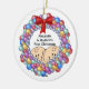Twin's First Christmas Ornament features an adorable pair of peeking twins with a wreath! Personalize with your baby information and date and you're all set to go! Wonderful dated keepsake gift for your baby's 1st christmas.