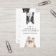 Cute watercolor pet care, pet sitter, and salon business card. Our Design features our hand-painted watercolor border collie & pomeranian dog illustrations peeking from the top and bottom of the business card. Established and paw print callout with business name and tagline. The reverse side is designed in a clean and modern layout with the name, title, social media icons, and social handle, along with a contact info display in the center of the card. A cute black labrador dog is peeking from the top of the business card. All illustrations are hand-painted original artwork by Moodthology Papery.
