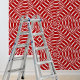 Peel and Stick Red White Geometric Spirals Circles Wallpaper. Great easy diy project for renters homeowners interior designers. Create a personalized look for your home condo apartment office or business. Decorate walls celings furniture headboard kitchen backsplash doors or storage containers. The possibilities are endless. Available in textured and smooth vinyl. Sizes 2'x4' 2'x8' 2x10' and 2'x12'.