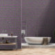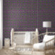 Peel and stick wallpaper. Brightly colored purple green yellow geometric tribal pattern. Renters homeowners interior designers can create a personalized look for any room.