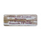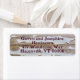 Return address labels with a peeling paint design. Printed text is dark wine red with space for four lines as needed. Wood slats have peeling, light gray paint.