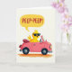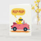 This design shows a plump, sun-yellow bird-like character with a perky feather crest and tiny wings, wearing sleek black sunglasses and flashing a wide grin as it drives a rosy-pink convertible with the top down. The character leans forward with an eager posture, like it’s heading out to meet a close friend, and the smile feels directed at someone just beyond the hood. The car sits in the lower middle of the scene, grounded by a warm ochre shadow that makes the wheels and body feel anchored. Above the driver, a bright yellow speech bubble floats near the top area, adding a flirty, light touch to the moment 🐰. Inside the bubble, the text reads “PEEP-PEEP!” in crimson letters, centered and easy to spot against the yellow. Red accents pop on the car details, while the sunglasses add a sharp black contrast that keeps the look snappy and modern 🌷. The background stays simple and bright so the yellow character and pink car stand out, with gentle texture visible along the car’s body and the speech bubble edges. The speech bubble is a rounded yellow shape with “PEEP-PEEP!” in crimson centered inside it above the car.