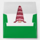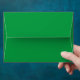 Cute gnome peeping out from the interior of this green envelope that features three lines of custom text for your return address.