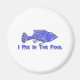 Fish stamp with dripping letters says "I pee in the pool." Great gag shirt to wear to the next swim practice or when you visit a public pool.