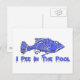 Fish stamp with dripping letters says "I pee in the pool." Great gag shirt to wear to the next swim practice or when you visit a public pool.