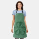 Great color and even though I ordered the kid size, it covers well enough to use during the holidays. I am not a big woman and prefer a shorter apron. I stand 5"6" and the length of the garment goes to mid-thigh. The tie straps fit well at my waist and even though there is no neck strap adjustment, the opening is plenty big enough. I am happy with the size and fit. I am sharing my apron with my 10 year old grandson, too! The color is vibrant and looks good, as shown on the website. The stitching looks strong and reinforced. Photographed is front side and back side of the apron, reinforced straps and coloring. My phone camera may not be the best at showing the details.