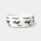 This is a heavy, durable bowl decorated with Tibbies of many colors, the perfect size for hungry/thirsty Tibs. The design is interesting and printing clear.