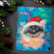 Pekingese Breed Dog Christmas features a watercolor of a Pekingese with a red Santa's Hat, a red Christmas collar, and a galaxy watercolor.