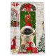 Pekingese Dog Christmas sitting outside decorated home with Christmas wreath, Christmas tree is a perfect Christmas gift idea for dog lovers.