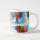 Pekingese Dog Running in Snow with Christmas Hat Giant Coffee Mug