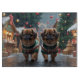 This festive design captures the joyful spirit of the holiday season, featuring an adorable dogs.Nestled in a winter wonderland, complete with a decorated Christmas tree, and beautifully wrapped presents. Snowflakes gently fall, adding a magical touch to the scene, while the vibrant colors of the holiday decorations create a warm and cheerful atmosphere.