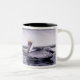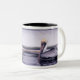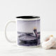 Profile of a pelican - the brown pelican, in the original photograph by MaeFlowers on this Mug, is gliding along the water of a canal on Florida's Gulf Coast. The side of a boat in the background shows the shimmering reflections of the blue water. The photo is in shades of blues, soft grays and browns, with a touch of yellow on the pelican's head.