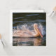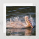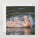 A majestic pelican gracefully floats on the water, its sleek feathers glistening with droplets as it vigorously shakes off the remnants of a recent dive. The contrast against the deep black background accentuates the elegance of the water droplets caught in mid-air, creating a captivating scene of nature in motion.
