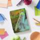I was super excited when I got my cover in. It is attached by a magnet across the edge. I don’t think it will be very protective but it is very cute. I’m going to keep my iPad in a sleeve and use this face cover while I have it out. It folds to create a tilt for better viewing and to keep the iPad at a slight angle for typing. The colors are bright and it is fun. I’ve really enjoyed it. The personalization looks like amazing. It is the same color as the picture and is the same brightness. Well done! Very nice.