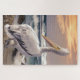 Photo of a pelican standing on the beach at sunset, with the ocean's waves crashing in the distance. This beautiful puzzle is sure to be a challenge to complete. It would be gorgeous in a frame on your wall.
