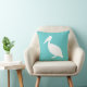 part of the ocean theamed decore PELICAN, WHITE on teal blue pillow on one side and teal and white strip on back.