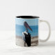 Pelican Perched On A Beach Rock, Two-Tone Coffee Mug