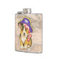Well made flask, a little better than I had expected. Flask came in clear plastic box which gave it a nice presentation when I took it out of the zazzle packaging. Image is not printed on flask but on sticker. Don't know how this will hold up I haven't used it yet. This would make a Great gift! I plan to purchase more for friends! Cheers. I thought a little brighter than computer. Very crisp, writing wasn't