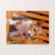 Pembroke Welsh Corgi puppy sitting in park bench Jigsaw Puzzle