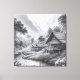 Pencil Sketch of a Cozy Hut by a Flowing River Canvas Print