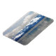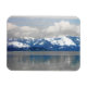 Looking east from Sandpoint, ID across Lake Pend Oreille (pond oh-ray) on a winter day; snow-covered mountains in the distance. Ice has formed at the shore and extends part way across the lake. Blues and grays are the predominate colors. From a photo taken by the artist.