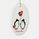 Personalized 25th silver wedding anniversary decoration with a cute penguin couple design.