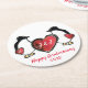 The design shows two penguins holding hearts with spaces for the initials of the couple. In addition, there is space for a personal message and the couple's marriage date.