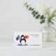 A cute design featuring a penguin standing on a patch of ice, holding a bunch of colorful balloons. Customize with your business info. as desired.