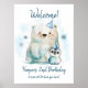 Chill vibes ahead! Get ready to turn up the coolness at your little cub's winter birthday party with this captivating winter birthday poster design! Our watercolor polar bear and friendly penguin are the hippest guests in town, all set to help celebrate. Snowflakes dance around the stylish design, setting the scene for an unforgettable winter wonderland celebration. Don't forget to check the store collection for all matching party supplies.