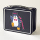 This is a standard metal lunchbox that appears to work just fine. We designed this box ourselves with an uploaded photo and custom text on the front and back. It looks absolutely beautiful except the front of the lunchbox is not centered like it shows in the photo. The print borders don't align with the inset flat part of the box where the preview photo online showed it perfectly centered in there. The back looks nice and centered though.