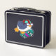 This is a standard metal lunchbox that appears to work just fine. We designed this box ourselves with an uploaded photo and custom text on the front and back. It looks absolutely beautiful except the front of the lunchbox is not centered like it shows in the photo. The print borders don't align with the inset flat part of the box where the preview photo online showed it perfectly centered in there. The back looks nice and centered though.