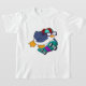 Thought the design was cute. After one wash with cold water on medium dry the decal flaked off and the shirt looks ornate. The tag says heavy duty cotton but the shirt doesn’t hold up. I would like a refund or my shirt remade. Horrible printing! Sadly the design did not stay on! Please refund me as for this price getting an unusable shirt is very disappointing.